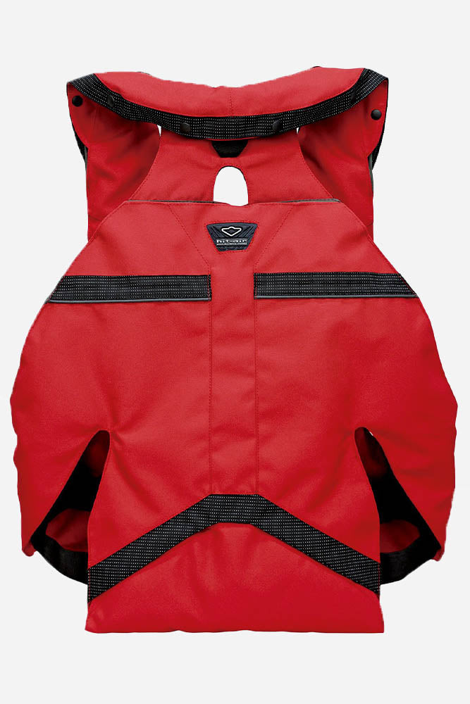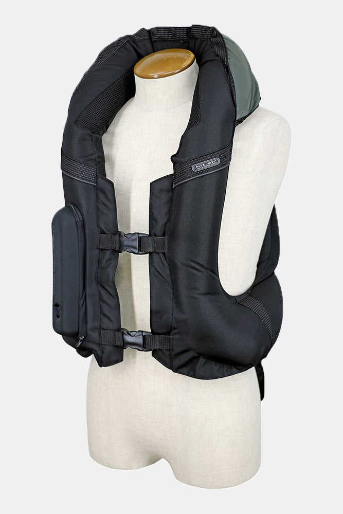 Hit-Air MLV2-C reflex. För ökad synlighet i mörker har västen strimmor av reflekterande material på framsida, baksida och nacken och är därför lämplig för ryttare som rider ut på vintern eller i mörker, och för motorcyklister. Västen är flexibel på bredden och passar dig som vill ha västen lite mindre figurnära. Kombination fästrem/sadelrem samt en gaspatron ingår. Inga tillköp behövs för att börja använda västen.